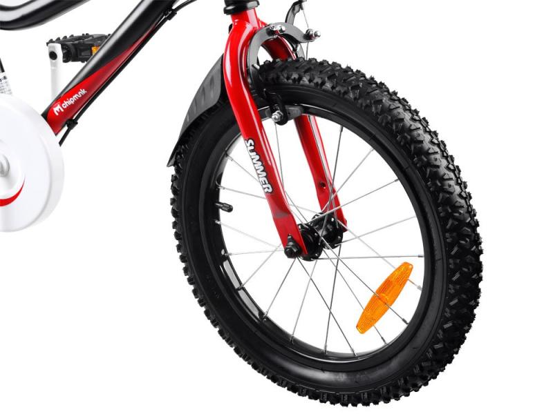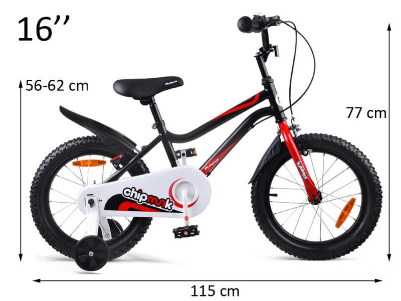 Dětské sportovní kolo Royalbaby Chipmunk MK vykouzlí úsměv na tváři každého malého rošťáka. Kolo má 16palcová nafukovací kola s kovovými ráfky a díky kvalitním plášťům s 3D vzorkem můžete vzít vaše kolo i do terénu. Kolo je určeno pro děti s výškou výškou postavy od 105 cm.Kolo má pevný kovový rám typu BMX, který okamžitě získá pozornost všech kolemjdoucích. Na řídítkách najdete ergonomické protiskluzové rukojeti, zvonek a dvě ruční páčkové brzdy, jejichž velikost je přizpůsobena pro malé dětské ruce. Pohodlné polstrované sedlo je výškově nastavitelné. Díky uzavřenému bezpečnostnímu krytu řetězu si děti nezašpiní kalhoty a nehrozí zachycení oděvu do ozubeného kola. Zároveň chrání řetěz před znečištěním.