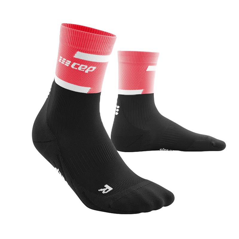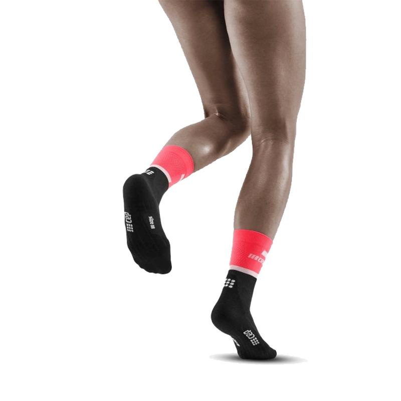 Dámske vysoké bežecké ponožky od značky CEP v ružovo-čiernom prevedení. Tesné priliehanie a osvedčená zmes materiálov pomáhajú predchádzať vzniku pľuzgierov. Technológia medi compression pre stabilizáciu členkového kĺbu a chodidlovej klenby. Anatomické polstrované zóny v chodidle pre spoľahlivé tlmenie nárazov.Určenie: ženy