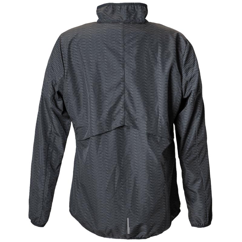 Každého běžce pak potěší detaily v podobě solidně veliké náprsní kapsy na zip, a abstraktního reflexního potisku po celé ploše bundy, který zajistí jeho viditelnost i za zhoršených světelných podmínek.