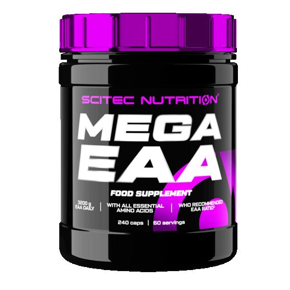 Scitec Nutrition Mega EAA je komplex dôležitých esenciálnych aminokyselín v najideálnejšom pomere, ktorý odporúča Svetová zdravotnícka organizácia (WHO). Príjem esenciálnych aminokyselín je podmienený kvalitnou stravou s obsahom bielkovín. Pre ľudský organizmus sú nevyhnutné, keďže si ich telo nedokáže samo syntetizovať (vytvárať). Mega EAA zabezpečuje jednoduché dopĺňanie aminokyselín v optimálnom pomere či už pred alebo po tréningu. Na jednu dávku obsahuje až 3200 mg esenciálnych aminokyselín.