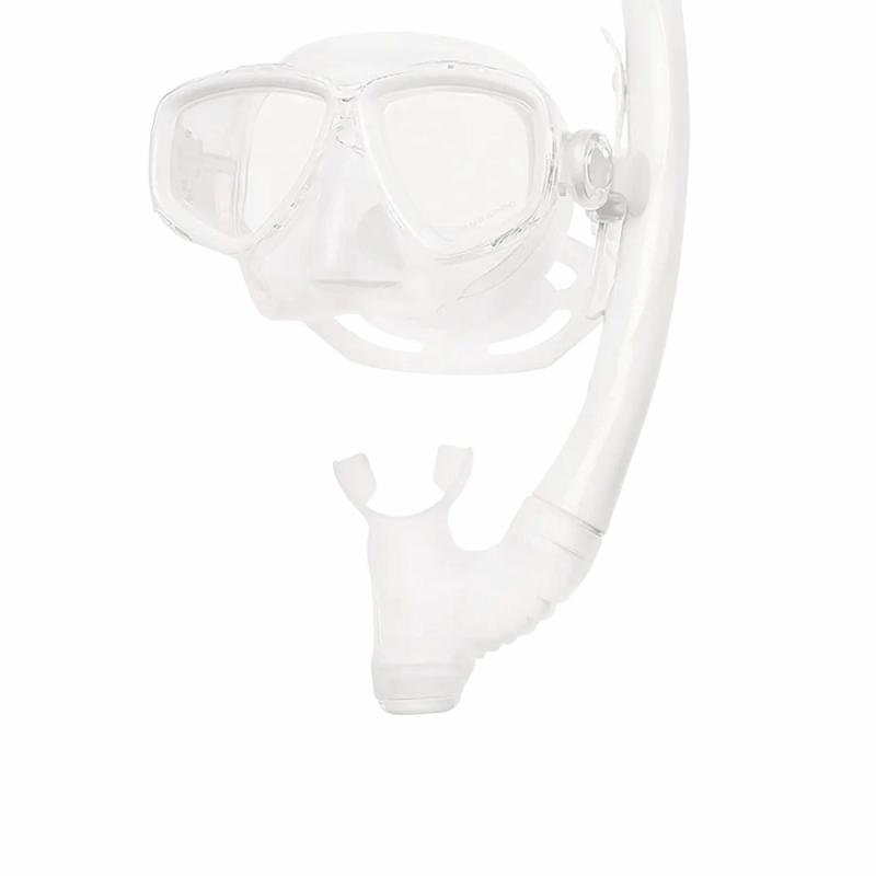 Součástí setu je také praktický šnorchl vybavený horním krytem proti vniknutí vody (splashguard), který omezuje vnikání vln a stříkající vody do náustku. Výdechový ventil umístěný pod náustkem umožňuje rychlé a snadné vyčištění šnorchlu bez nutnosti vyplavování vody ústy, což zvyšuje pohodlí a bezpečnost při dýchání pod hladinou.