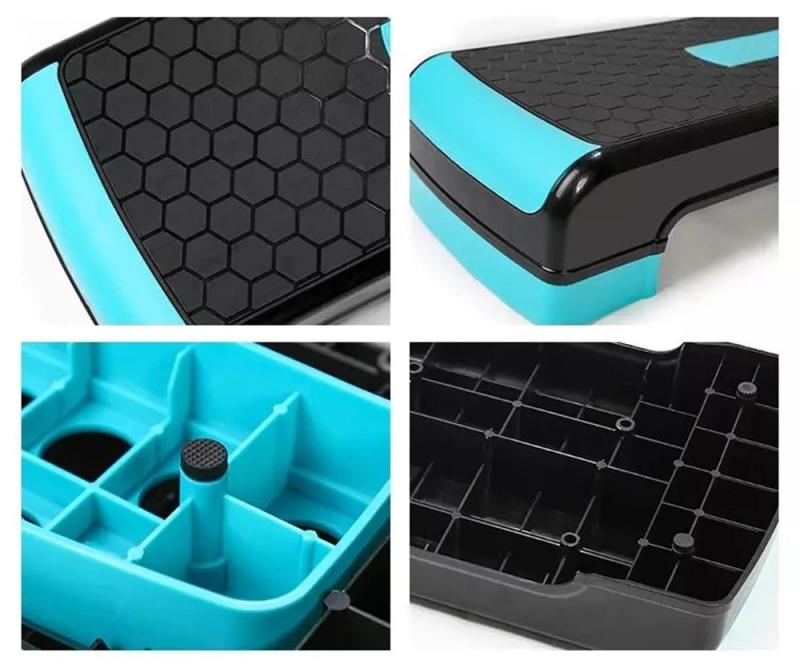 Celý povrch bedničky je pokrytý protišmykovým materiálom, ktorý zvyšuje bezpečnosť a komfort počas cvičenia. Pri step aerobiku prekonávate výškový rozdiel vystupovaním na bedničku a zostupovaním späť na podložku, čo vedie k odlišnému zaťaženiu svalov v porovnaní s bežným aerobikom.