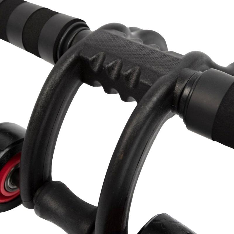 Je určené na posilňovanie chrbtových aj brušných svalov a svalov horných končatín. Jednoduchým spôsobom si tak spevníte a vytvarujete tieto partie. Fitness koliesko ponúka vďaka svojej konštrukcii so štyrmi kolieskami výhodu väčšej stability. Je vyrobené z kombinácie PP, ABS plastu a ocele. Penové madlá ponúkajú pohodlný úchop.
