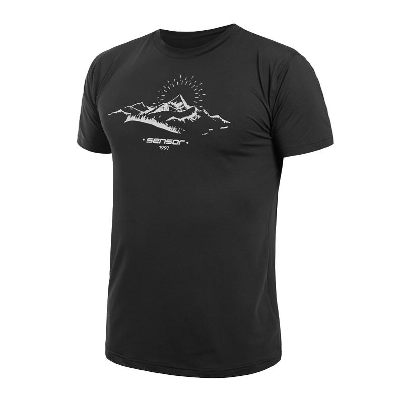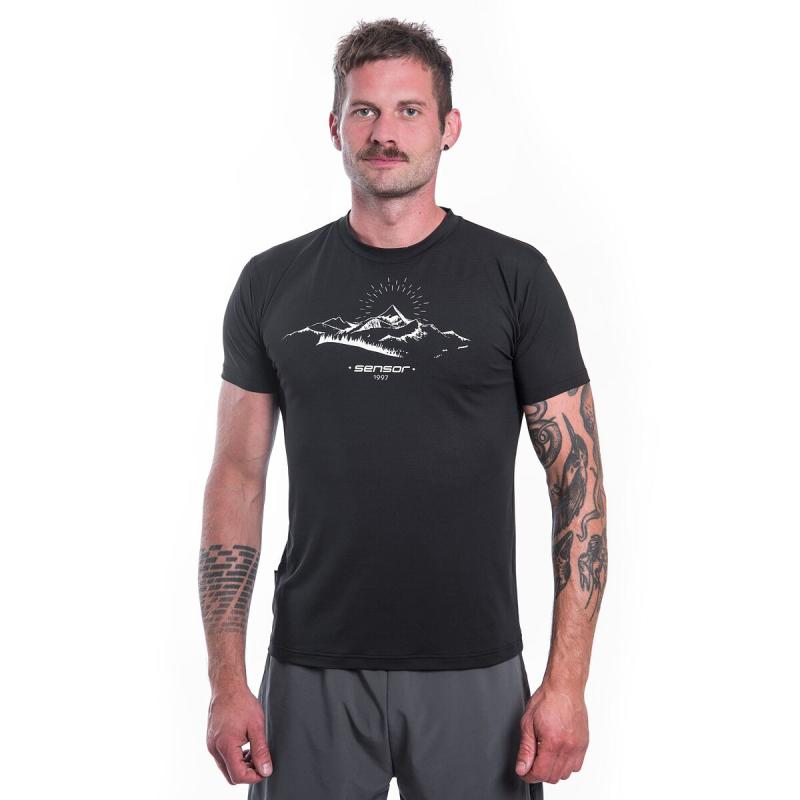 SENSOR Coolmax Tech Mountains 98 pánské černé triko kr.rukáv