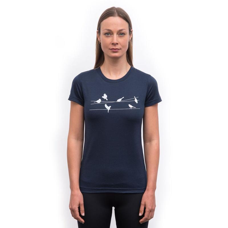 SENSOR Merino Active Songbirds dámské triko kr. rukáv Deep Blue