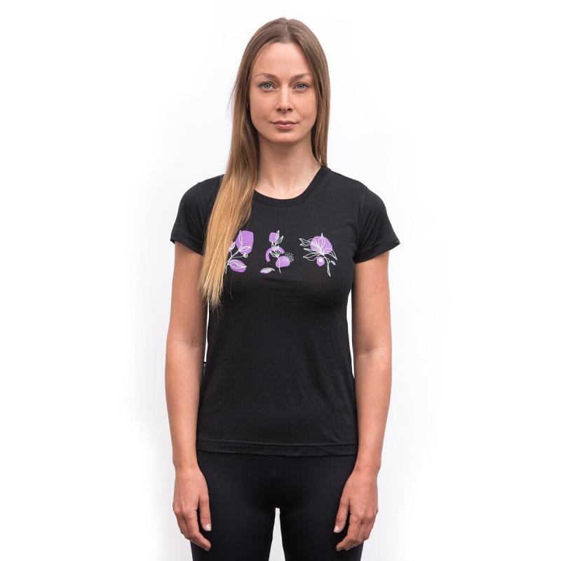 SENSOR Merino Air Bloom dámske čierne tričko kr.rukáv