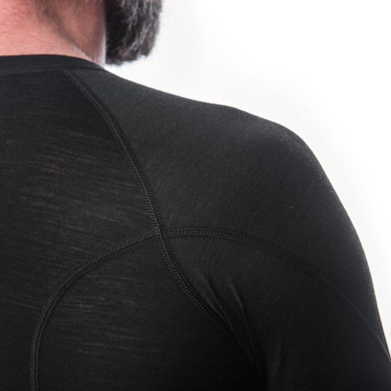 Toto tričko je vyrobeno z jednolícního úpletu, který kombinuje velmi jemnou Merino vlnu s polyamidovým hedvábím, čímž vzniká materiál, který je nejen měkký a příjemný na dotek, ale také elastický a odolný vůči opotřebení. Přídavek polyamidu zlepšuje termoregulaci a tvarovou stálost výrobku, což prodlužuje jeho životnost a zajišťuje pohodlí při dlouhodobém nošení.