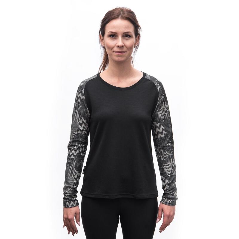 SENSOR Merino Blend Impress dámské triko dl.rukáv černá/zebra