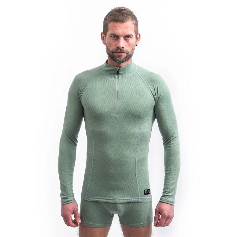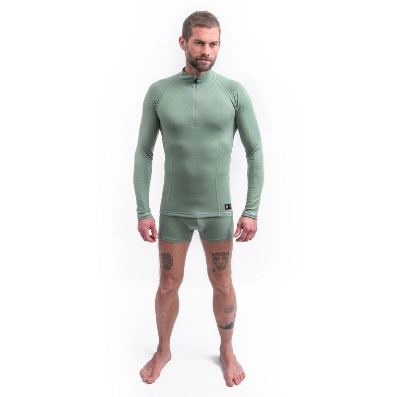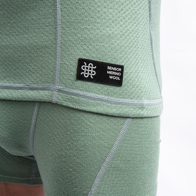 SENSOR Merino Df Zip Basil Green pánské tričko