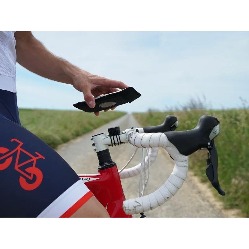 Pouzdro i s telefonem lze snadno odejmout od magnetického držáku, což usnadňuje manipulaci bez nutnosti telefon neustále vyndávat. Tento držák je kompatibilní se všemi představci a řidítky, což zajišťuje široké možnosti použití.