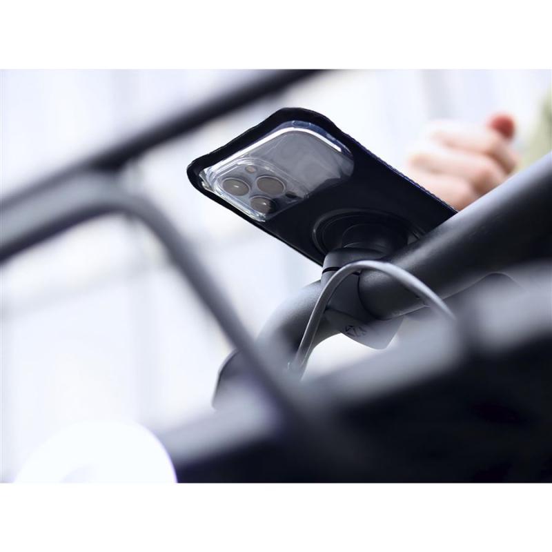 Tento šroubovací magnetický držák s pouzdrem na telefon je navržený pro bezpečné a pohodlné upevnění na jízdní kolo. Pouzdro je dostupné ve třech velikostech (M, XL a XL+) podle výšky telefonu, přičemž velikost M je vhodná pro telefony vysoké do 14,7 cm.