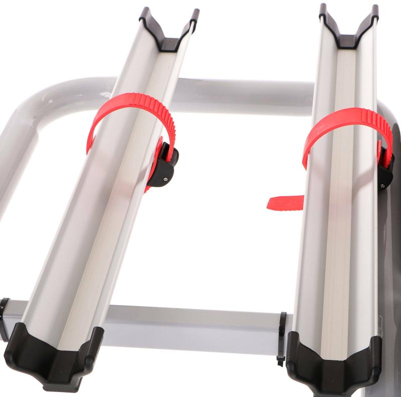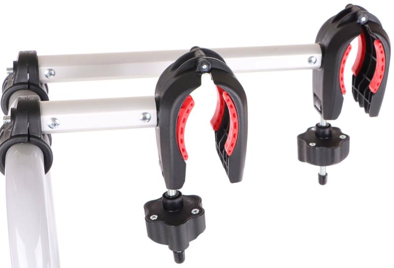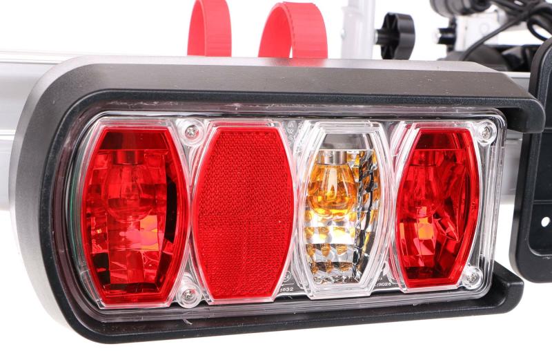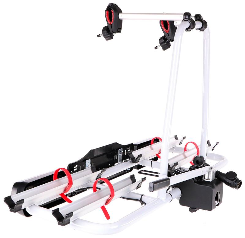 Spoľahlivý nosič kol na upevnenie na guľu ťažného zariadenia E-BIKE 2 pre 2 elektrobicykle. Nosič je vyrobený z ocele a hliníka. Nosič disponuje jednoduchým systémom upevnenia, s naklápaním pre prístup do kufra, s kompletne osvetleným panelom a miestom pre evidenčnú značku vozidla. Upevnenie bicykla do nosiča prebieha bez náradia, vykonáva sa uchytením držiaka na rám a dotiahnutím spon na kolesách, umiestnených na základe. Mechanizmus je uzamykací a nehrozí tak odcudzenie bicykla. Zaistovací koliesko pre upevnenie bicykla je potrebné dôkladne dotiahnuť, aby sa prekonal odpor preklzu v zamknutej polohe. Nosič je vyhotovený z ocele a každá zo základní bicykla je z hliníka. Nosič je vybavený panelom s osvetlením a miestom pre uchytenie evidenčnej značky (EČV). Svetelný panel je pripojený k zásuvke ťažného zariadenia vozidla pomocou 13-pólového konektora a je vybavený kompletnými zadnými svetlami, vrátane osvetlenia EČV. Napriek veľkým rozmerom nosiča je stále umožnený prístup do kufra a to vďaka dômyselnej konštrukcii a možnosti naklápania celého nosiča.