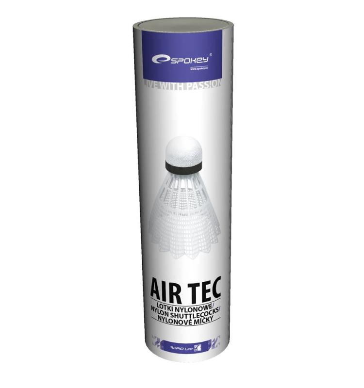 Tréningové bedmintonové loptičky Spokey AIR TEC majú hlavičky vyrobené z peny s tvrdosťou 40-50 w, vďaka čomu získavajú správnu rýchlosť a zároveň umožňujú presné odrazy. Špeciálna konštrukcia košíčkov z kvalitného polyamidu s prídavkom kaučuku zabezpečuje letové parametre veľmi blízke perovým loptičkám. Preto je bedmintonová loptička Spokey AIR TEC tou najlepšou alternatívou perových loptičiek. Sada AIR TEC sa skladá zo 6 bedmintonových loptičiek balených v estetickej tube, ktorá uľahčuje ich prepravu a skladovanie.