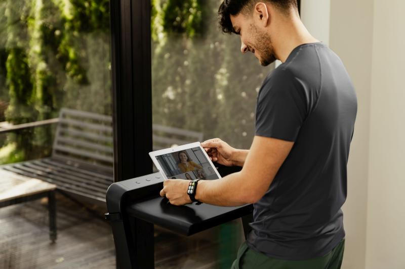 - Odnímatelný pracovní stolek: ideální místo pro váš notebook, tablet nebo telefon, na němž můžete během tréninku pracovat