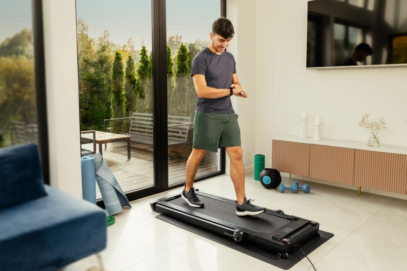 Elektrický běžecký pás EZRA - váš parťák pro domácí kardio tréninkElektrický běžecký pás EZRA má minimalistický a moderní design. Je ideálním řešením pro ty, kteří chtějí doma spojit fyzickou aktivitu s prací. Běžecký pás je vybaven odnímatelným a stabilním pracovním stolkem určený pro notebook, tablet nebo chytrý telefon, takže můžete cvičit během online pracovní schůzky nebo při sledování oblíbeného televizního seriálu. A díky dálkovému ovládání, které lze nosit jako hodinky, je ovládání rychlosti běžeckého pásu maximálně pohodlné. 12 tréninkových programů zajistí, že vaše cvičení bude přizpůsobeno vašim potřebám a schopnostem.