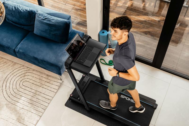 Elektrický běžecký pás EZRA, toje inovativní řešení, které díky pracovnímu stolku umožňuje spojit trénink s využitím notebooku, tabletu nebo chytrého telefonu. Díky tomu můžete chodit nebo běhat a přitom sledovat svůj oblíbený seriál nebo se zúčastnit online obchodní schůzky. Výkonný motor o výkonu 1,5 HP umožňuje dosáhnout rychlosti až 14 km/h pro intenzivní běžecké tréninky. Dvoustupňové nastavení sklonu a 12 tréninkových programů navíc přináší různorodý a personalizovaný trénink. Běžecký pás EZRA je vybaven protiskluzovým povrchem pásu, výškově nastavitelnými sloupky a bezpečnostním klíčem, které zajišťují bezpečnost a komfort během používání. Kolečka zase usnadňují přemísťování běžeckého pásu.