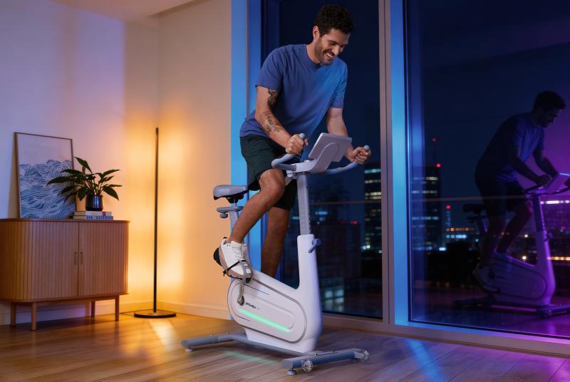 LED podsvícení dynamicky mění barvy podle rychlosti jízdy, od modré přes zelenou až po červenou, což přináší vizuální motivaci a moderní vzhled. Pomocí Bluetooth připojení je možné rotoped propojit s aplikacemi Kinomap a Zwift, které zpestří trénink virtuálními trasami, soutěžemi a sledováním pokroků.