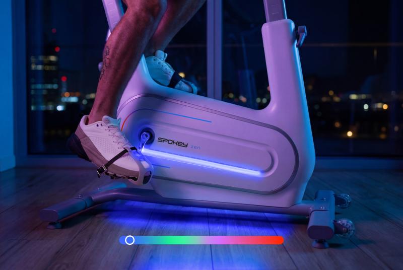 LED pásek mění barvy podle rychlosti jízdy, což přináší vizuální zpětnou vazbu o intenzitě tréninku a zároveň zvyšuje atraktivitu cvičení.