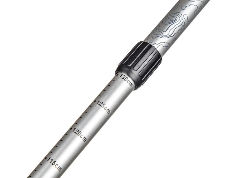 Nabízejí možnost nastavení výšky v rozsahu 65 až 135 cm, díky čemuž si je snadno přizpůsobíte své postavě i terénu. Průměr jednotlivých sekcí je 18, 16 a 14 mm, což zajišťuje pevnost a zároveň nízkou hmotnost. Vyrobeny jsou z kvalitního hliníku ALU 6061, který je odolný a lehký.