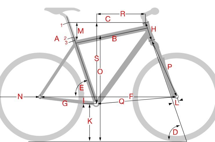 Vertikální rozdíl nejvyšší a nejnižší části rámu - sloping | M | 295 | Rozdíl sklonu horní rámové trubky od vodorovné osy kola |