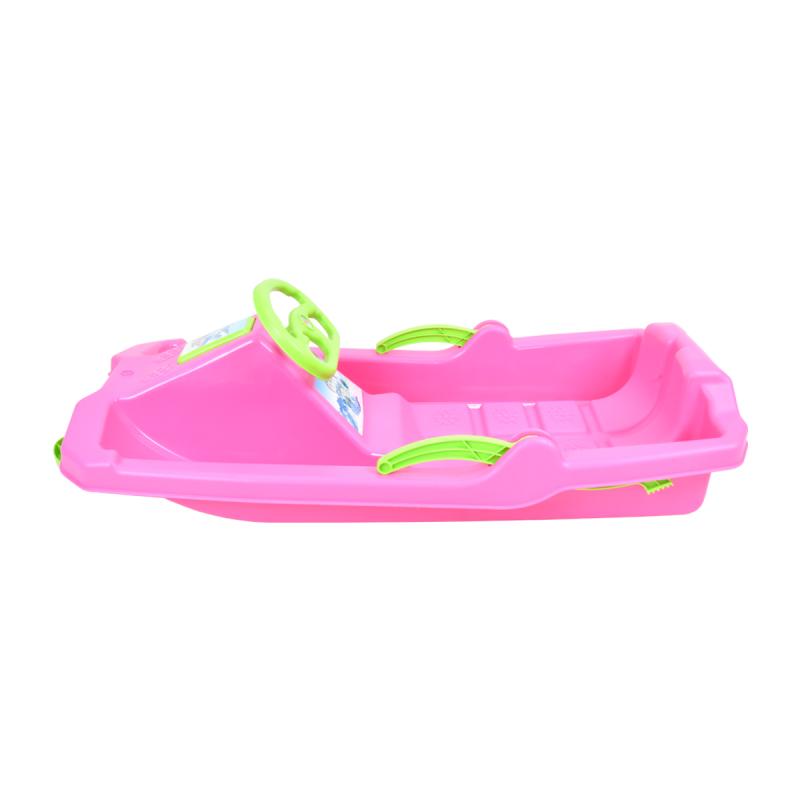 Jednomístný plastový bob s volantem, brzdovými pákami a tažným lanem pro bezpečnou a pohodlnou jízdu na sněhu. Zobrazit celý popis