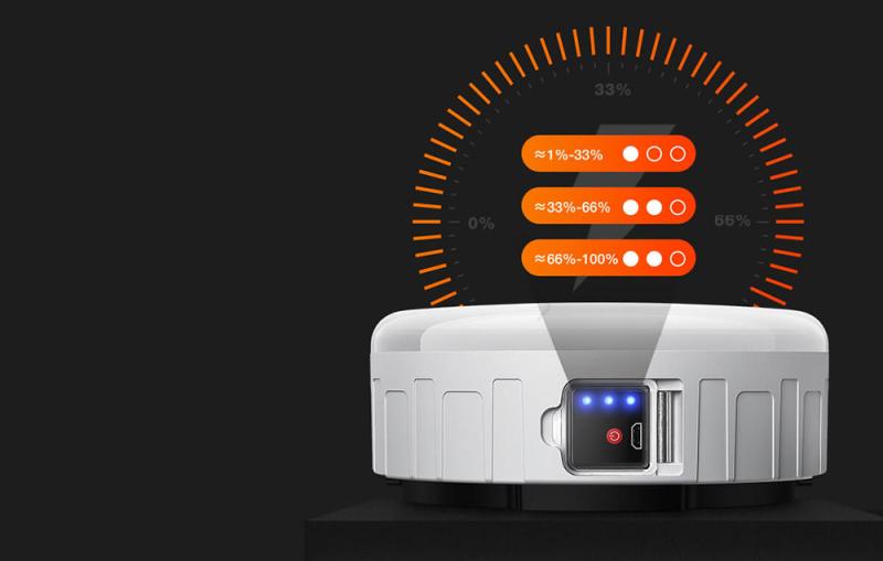 Kompaktné kempingové svetlo od spoločnosti Superfire je ideálne nielen pre akýkoľvek výlet do kempu. Môžete ju tiež použiť v prípade výpadku prúdu, pri oprave auta a pod. Môžete ju ľahko zavesiť do stanu pomocou háčika, ktorý je k nej pripevnený. Svetlo, ktoré generuje, nedráždi oči. Príslušenstvo tiež spotrebúva málo energie a je vodotesné. Indikátor vás informuje o stave nabitia batérie a môžete ho dobíjať pomocou sieťovej nabíjačky, powerbanky a pod. Tlačidlo napájania a nabíjací port USB sú zakryté priehľadným krytom, ktorý ich chráni pred vlhkosťou.