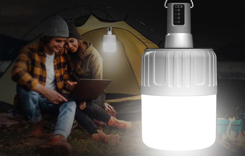Kempingová lampa T26-S je mimoriadne ľahká a prenosná - môže vás sprevádzať takmer kdekoľvek. V batohu alebo cestovnej taške vám nezaberie príliš veľa miesta! Skvele sa bude hodiť nielen na kempovanie. Jej ďalšou výhodou je špeciálny háčik, pomocou ktorého ju môžete napríklad zavesiť na strom alebo do stanu. Zariadenie má tiež zabudovaný displej, ktorý vám poskytne informácie o stave jeho nabitia.