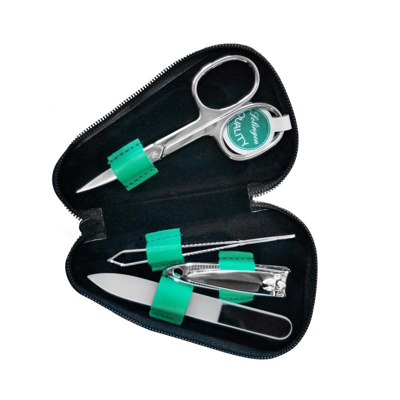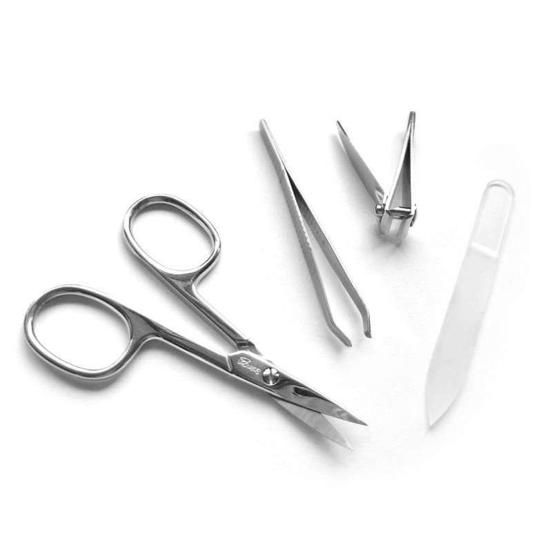 Sada obsahuje 4 základné nástroje na úpravu nechtov v praktickom koženom puzdre so zipsom, ideálne na cesty aj domáce použitie.Táto 4-dielna sada ponúka všetko potrebné pre precíznu úpravu nechtov, či už ste doma alebo na cestách.