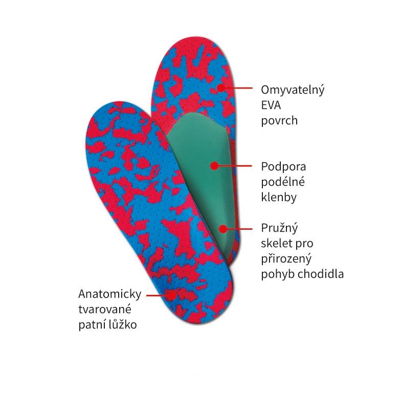 Mäkké a ľahké ortopedické vložky na podporu pozdĺžnej klenby. Pomáhajú vyrovnávať chodidlá do správnej polohy a zmierňujú došľap.