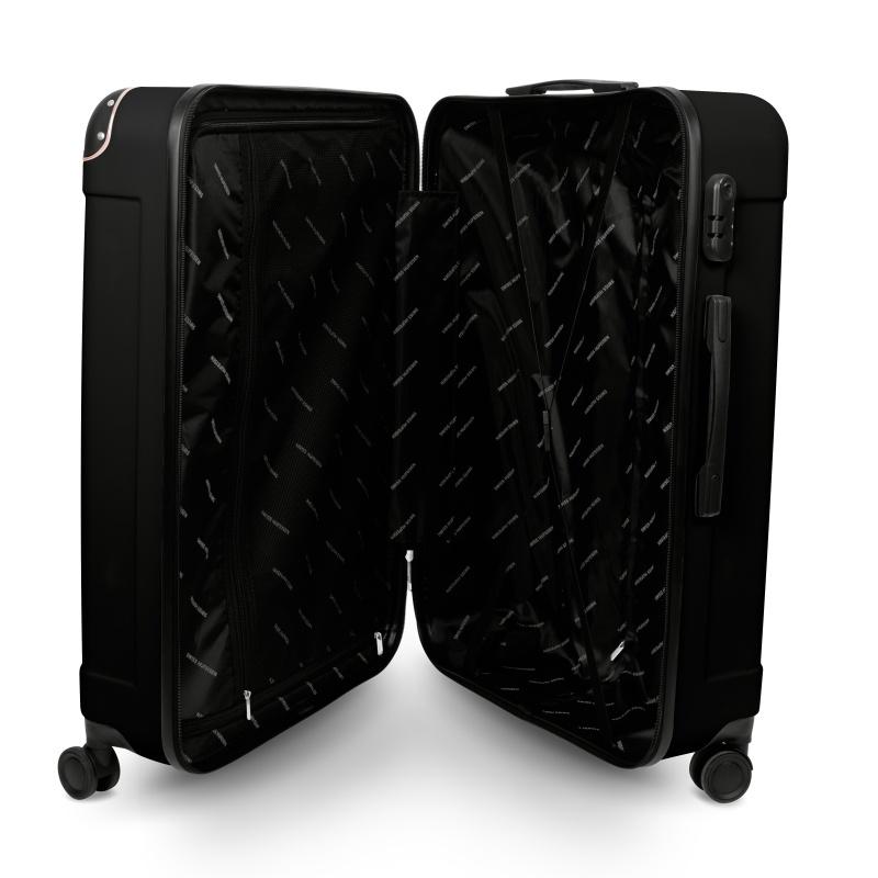 Objevte svobodu cestování s touto elegantní sadou tří kufrů v černo-růžovo-zlatém designu, která spojuje styl, odolnost a praktické funkce. Vyrobeny z pevného a pružného plastu, tyto kufry jsou připraveny odolat nástrahám každé cesty. Díky tichým 360° otočným dvojitým kolečkům a 3stupňové teleskopické rukojeti si je snadno přizpůsobíte přesně podle svých potřeb. Bezpečnost zajistí zámek s heslem, zatímco nárazuvzdorné rohové kryty chrání obsah při cestě. Pohodlné uchopení a hladký zip dělají z balení a vybalování radost.