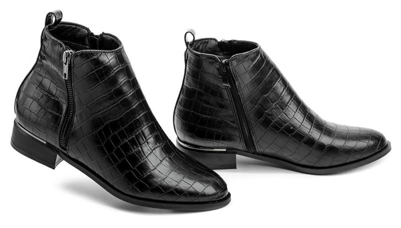 Obuv je vyrobená ze syntetického materiálu s croco úpravou. Stélka i podšívka je vybavená textilním materiálem s jemným kožíškem, který tvoří mírné zateplení.