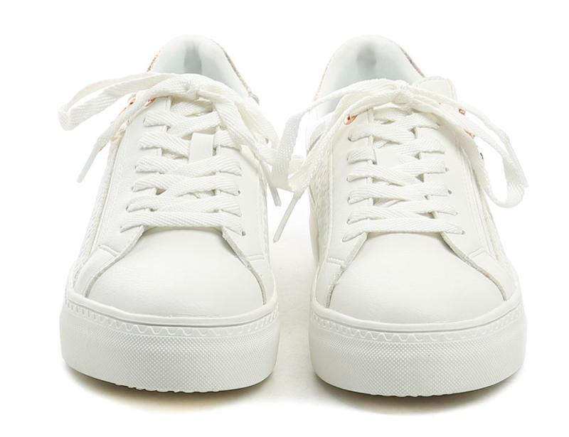 Barevné provedení v bílé s jemným zlatorůžovým prvkem dodává botám svěží a moderní vzhled, který snadno sladíte s různými outfity.