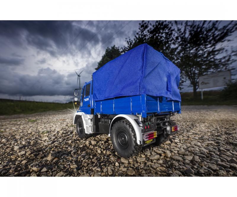 RC model MB U300 Unimog v měřítku 1:12 od výrobce Carson. 100% RTR, LED světla, proporcionální ovládání, klakson, THW provedení.