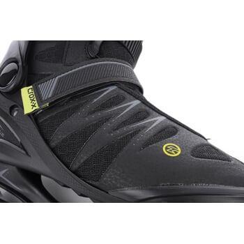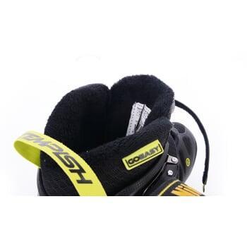 Vnitřní výstelka má anatomický tvar v oblasti kotníku a Achillovy šlachy. Středně tuhá bandáž zajistí pevnou a pohodlnou fixaci chodidla v botě. V botě je anatomická vkládací stélka, která lépe přenáší pohyb z chodidla na brusli.