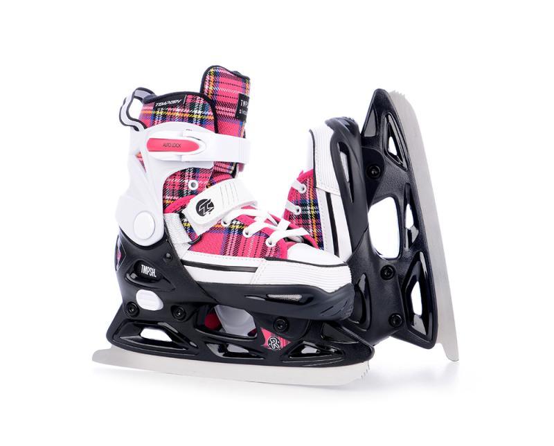 Dívčí lední brusle s novým designem určeny pro rekreační sport, začínající a pokročilé bruslaře. Měkká rychleschnoucí výstelka zajišťuje pohodlné přizpůsobení tvaru dětské nohy. Brusle jsou v největší velikosti roztažitelné až na velikost 43 a proto mohou tuto brusli používat i starší slečny a dámy. Brusle mají jednoduchý a pohodlný systém zvětšení velikosti tlačítkem na boční straně skeletu. Brusli lze nastavit na 4 velikosti.