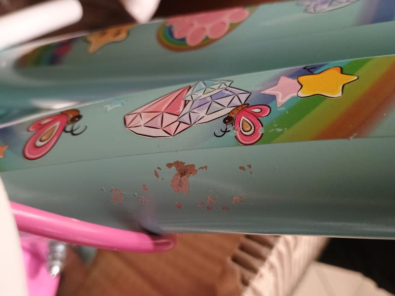 RÁM BICYKLA MÁ DROBNÉ ODRENINY, JEDNA Z NÁLEPIER JE POŠKODENÁ, VIĎ FOTO. Detské kolo Toimsa T14211 Catcorn 14 je odporúčané pre deti vo veku od 4 do 6 rokov a výšku postavy 95-115 cm. Odporúčaná výška rozkroku dieťaťa od zeme je 42-51 cm. Bicykel má 14 palcové nafukovacie kolesá, lakované kovové ráfiky a dve brzdy, ktoré sa ovládajú páčkami na riadidlách. Zadné koleso má cvrčka (voľne sa otáča), takže dieťa nemusí šliapať počas celej jazdy. Zobrazit celý popis