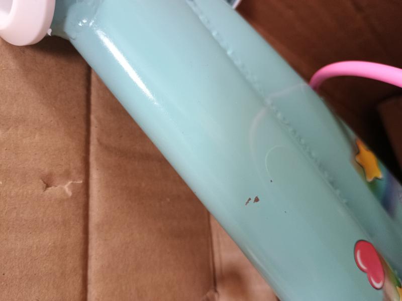 RÁM BICYKLA MÁ DROBNÉ ODRENINY, JEDNA Z NÁLEPIER JE POŠKODENÁ, VIĎ FOTO. Detské kolo Toimsa T14211 Catcorn 14 je odporúčané pre deti vo veku od 4 do 6 rokov a výšku postavy 95-115 cm. Odporúčaná výška rozkroku dieťaťa od zeme je 42-51 cm. Bicykel má 14 palcové nafukovacie kolesá, lakované kovové ráfiky a dve brzdy, ktoré sa ovládajú páčkami na riadidlách. Zadné koleso má cvrčka (voľne sa otáča), takže dieťa nemusí šliapať počas celej jazdy.Základom bicyklov značky Toimsa je kvalitný rám z Hi-Ten ocele. Hmotnosť bicykla so všetkými doplnkami je 9,5 kg. Maximálna hmotnosť jazdca je 34 kg. Súčasťou balenia je všetko príslušenstvo zobrazené na obrázku (blatníky, odrazky, kryt reťaze, nálepky, predný košík a sedačka pre bábiky). Bicykel má komfortné polstrované sedlo a bezpečnostnú koncovku riadidiel. Výška riadidiel aj sedla je nastaviteľná podľa výšky dieťaťa.