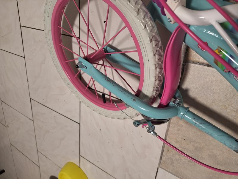 KOLO MÁ ODRETÚ VIDLICU A POŠKODENÉ NÁLEPKY, VIĎ FOTOGALÉRIA. Detské kolo Toimsa T16211 Catcorn 16 je odporúčané pre deti vo veku od 5 do 7 rokov a výšku postavy 105-125 cm. Odporúčaná výška rozkroku dieťaťa od zeme je 47-64 cm. Kolo má 16 palcové nafukovacie kolesá, lakované kovové ráfiky a dve brzdy, ktoré sa ovládajú páčkami na riadidlách. Zadné koleso má cvrčka (voľne sa otáča), takže dieťa nemusí šliapať počas celej jazdy. Zobrazit celý popis