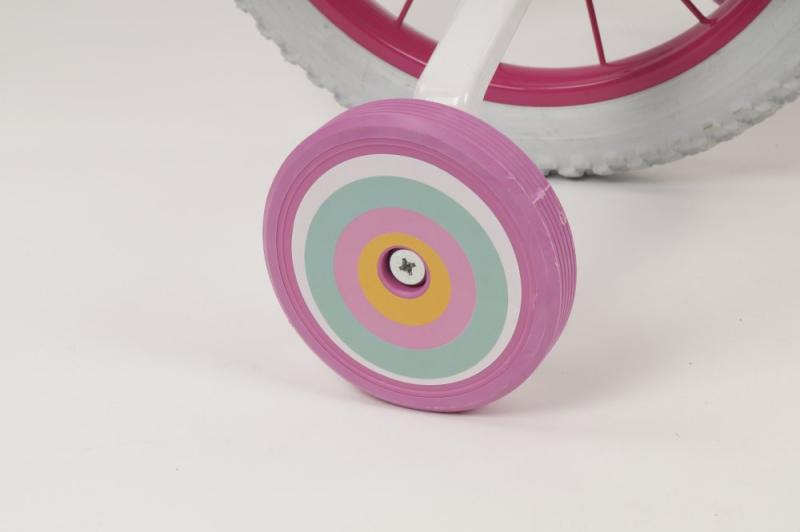 Súčasťou balenia je všetko príslušenstvo zobrazené na obrázku (blatníky, odrazky, kryt reťaze, nálepky, predný košík a sedačka pre bábiky). Kolo má komfortné polstrované sedlo a bezpečnostnú koncovku riadidiel. Výška riadidiel i sedla je nastaviteľná podľa výšky dieťaťa. Neoddeliteľnou súčasťou dodávky kola sú tiež balančné kolieska, ktoré je možné veľmi ľahko namontovať/odmontovať pomocou plastových matíc bez nutnosti použitia náradia či demontáže zadného kolesa. Balenie obsahuje používateľskú príručku v českom jazyku. Kolo je dodávané v prepravnej krabici takmer zložené, po vybalení stačí v piatich jednoduchých krokoch podľa priloženého návodu nasadiť diely, ktoré museli byť kvôli preprave v krabici demontované (pedále, sedlo, riadidlá, balančné kolieska a plastové doplnky).