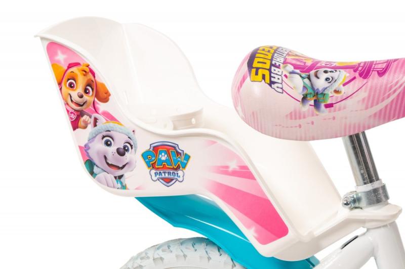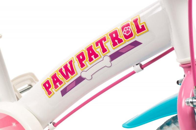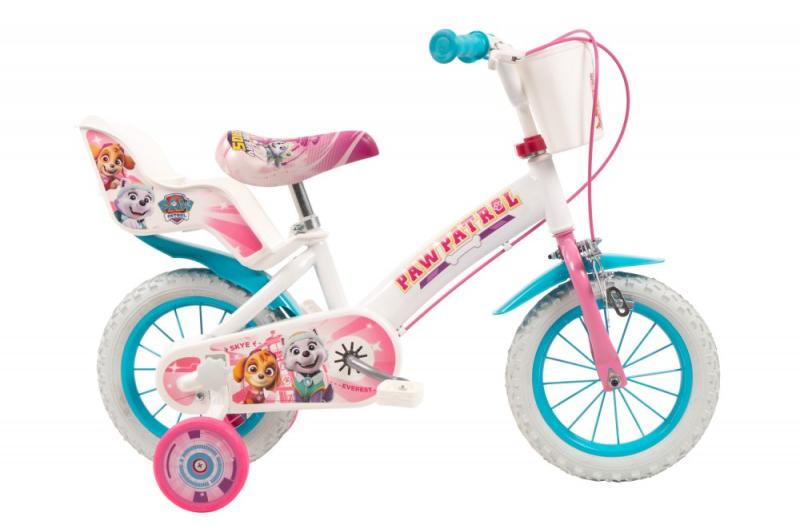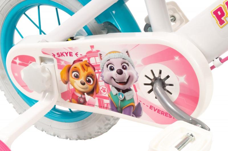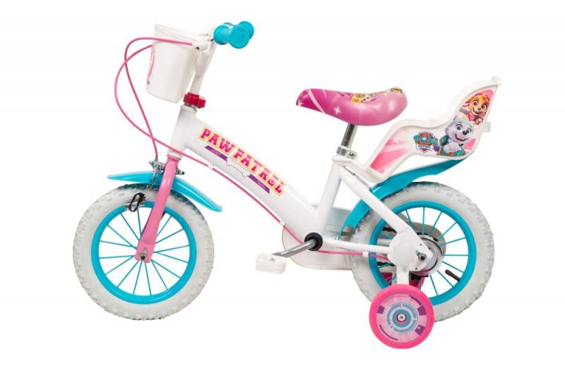 Dětské kolo Toimsa T1281 Tlapková Patrola bílé 12 (Paw Patrol girl) je doporučeno pro děti ve věku od 3 do 5 let a výšku postavy 85-100 cm. Kolo má 12 palcová nafukovací kola, lakované kovové ráfky a dvě brzdy, které se ovládají páčkami na řídítkách.Zadní kolo má cvrčka (volně se otáčí), takže dítě nemusí šlapat po celou dobu jízdy. Základem kol značky Toimsa je kvalitní rám z Hi-Ten oceli. Hmotnost kola je 8,5 kg. Maximální hmotnost jezdce je 30 kg. Součástí balení je veškeré příslušenství vyobrazené na obrázku. Kolo má komfortní polstrované sedlo a bezpečnostní koncovku řídítek. Výška řídítek i sedla je nastavitelná podle výšky dítěte.