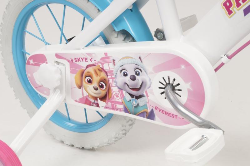 Detské kolo Toimsa T1481 Tlapková Patrola biele 14 (Paw Patrol Girl) je odporúčané pre deti vo veku od 4 do 6 rokov a výšku postavy 95-115 cm. Odporúčaná výška rozkroku dieťaťa od zeme je 42-51 cm. Kolo má 14 palcové nafukovacie kolesá, lakované kovové ráfiky a dve brzdy, ktoré sa ovládajú páčkami na riadidlách.
