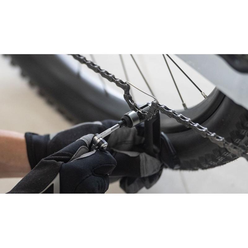 Vestavěné magnety zajišťují a drží skládací nářadí na místě. Pro ty, kteří rádi jezdí bez brašny nebo batohu, je toto nenápadné multifunkční nářadí skvělou volbou.