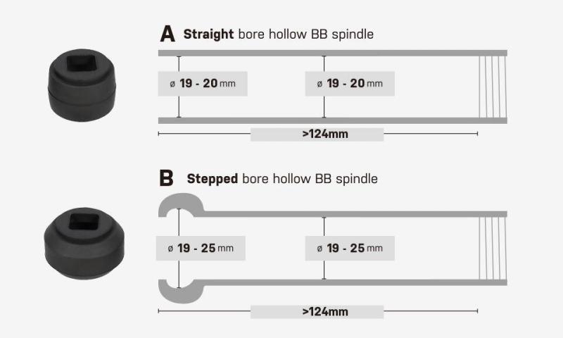 Omezení: Dutá osa klik s rovnou částí minimálně 124mm, ø19 - ø25mm