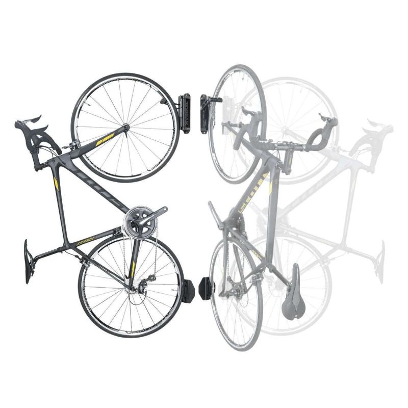 Tento praktický držiak slúži na uchytenie bicykla na stenu a ponúka možnosť jeho vytočenia do strany, čo pomáha efektívne šetriť priestor v miestnosti alebo garáži.