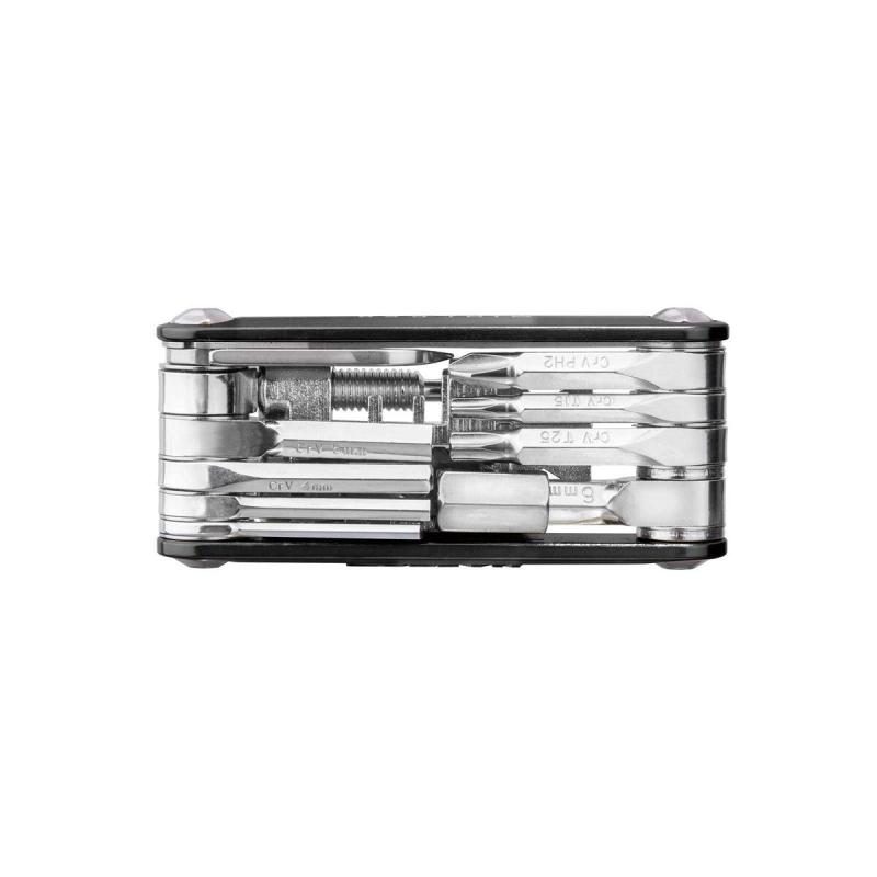 Vysoce kvalitní a přesné mini nářadí s 20 funkcemi v elegantním těle z kovaného hliníku. Integrovaná nýtovačka řetězu s vestavěným nástrojem master link. Ideální multifunkční nářadí pro jakoukoli vyjížďku.