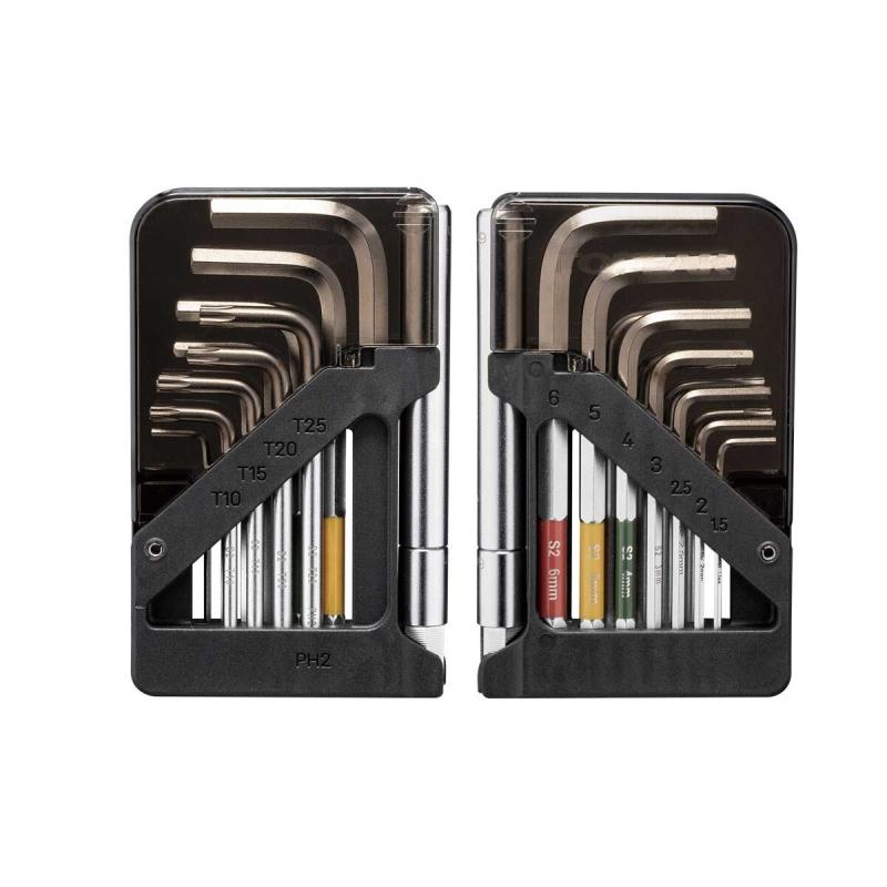 Unikátní sada obsahující inbus klíče s kulovým zakončením a Torx klíče. Vše je uloženo v inovativním skládacím těle organizéru, které je dostatečně malé, aby se vešlo do kapsy na dres nebo do sedlové tašky. Sada obsahuje prodlužovací rameno, které v případě potřeby přidává pákový efekt. Zobrazit celý popis