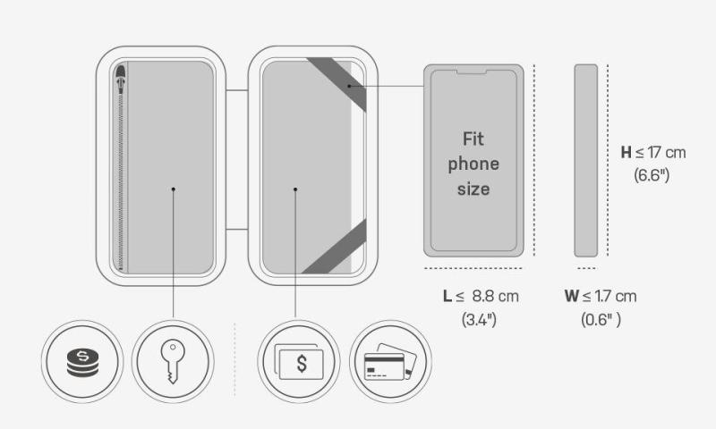 Pre smartfóny ≤ 17 x 8.8 x 1.7 cm, platobné karty, bankovky, mince a kľúče