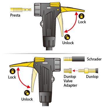 SmartHead™ s tlačidlom na upúšťanie umožňuje precízne nastavenie tlaku. Stabilná trojnohá základňa s oceľovým telom pre jednoduché nafukovanie až do 200 psi / 14 bar. Výborne čitateľný manometer pre jednoduché dosiahnutie požadovaného tlaku. Extra dlhá 120 cm hadička pre jednoduché pripojenie k prednému i zadnému kolesu aj keď je koleso umiestnené v stojane.