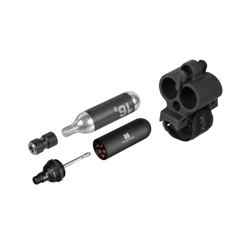 Nano AirBooster CO2 inflator, TubiCartridge R16, and one 16g CO2 cartridge