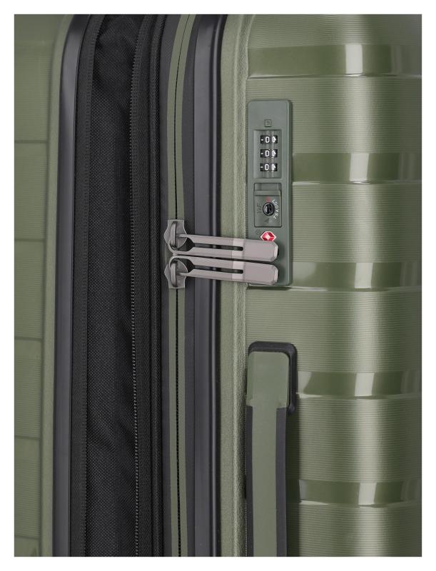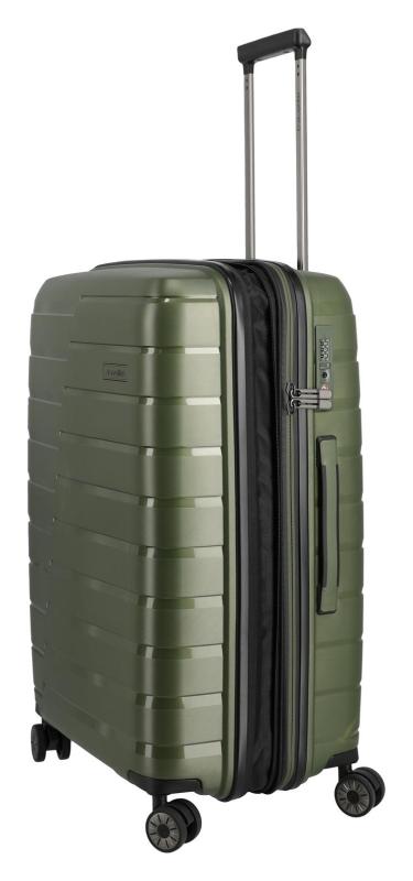 Ľahký a elegantný kufor na štyroch kolieskach z extra odolnej škrupiny vybavený TSA zámkom a expandérom.